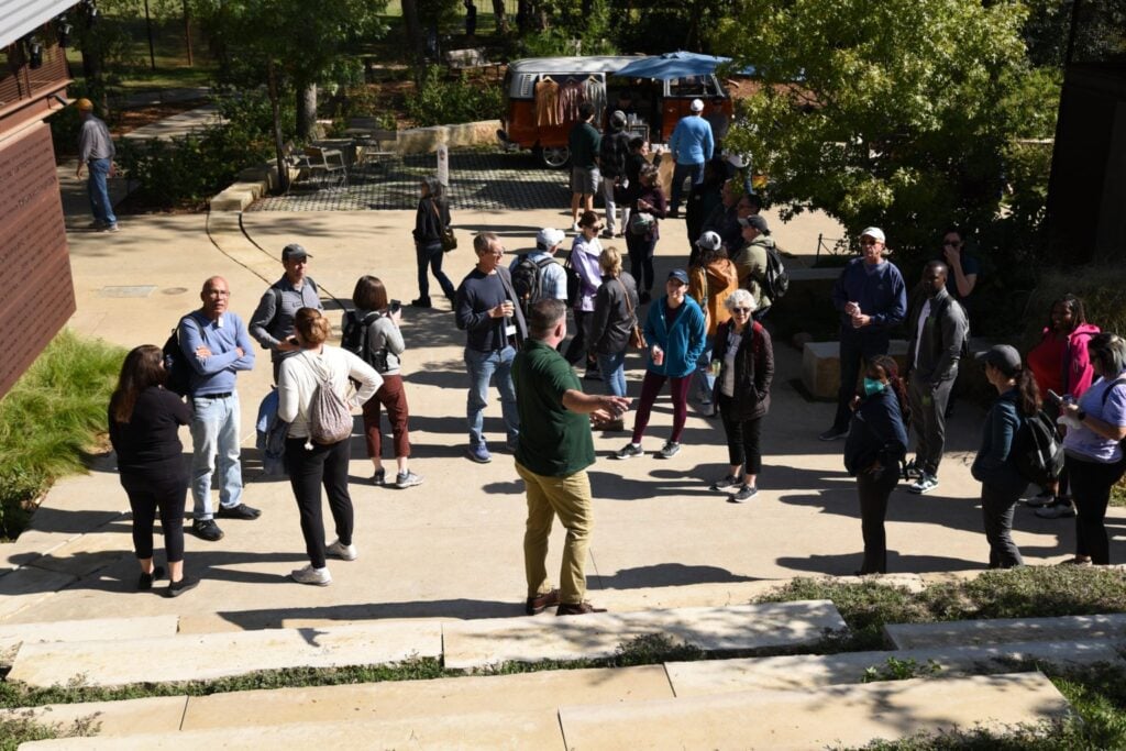 Austin is growing quickly, and thanks to the City’s leadership and philanthropic donors, so too is its park system. During our visit, we learned how the Pease Park Conservancy team worked with the City of Austin to sustain and enhance the 84 acres of Pease Park, beginning with the development of a park vision plan. Then the Pease Park Conservancy fundraised for and invested $10 million in the renovation and improvement of 7 acres of the park, and now is responsible for operations and maintenance, programming, and events. The Conservancy continues to work on plans for implementing future phases of the Pease Park vision plan throughout the rest of the 84 acres.